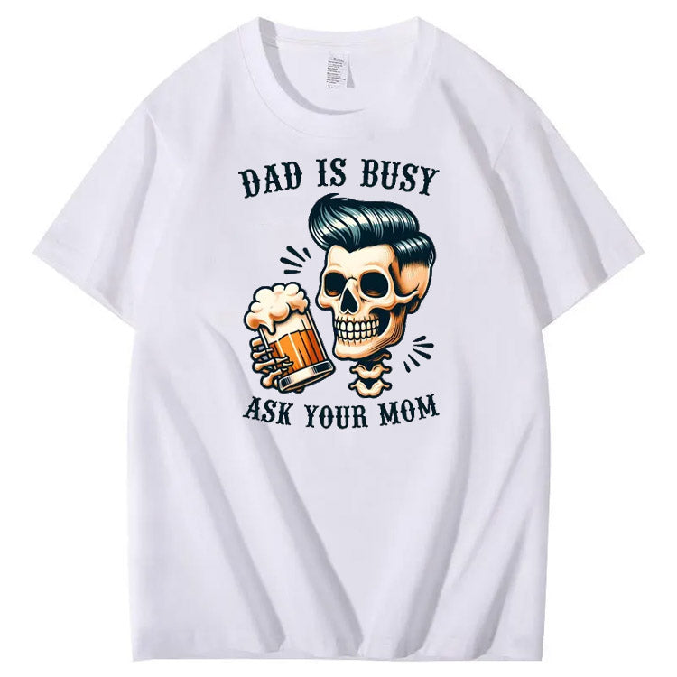 Dad Is Busy Ask Your Mom Pattern Print 100%Cotton T-Shirt