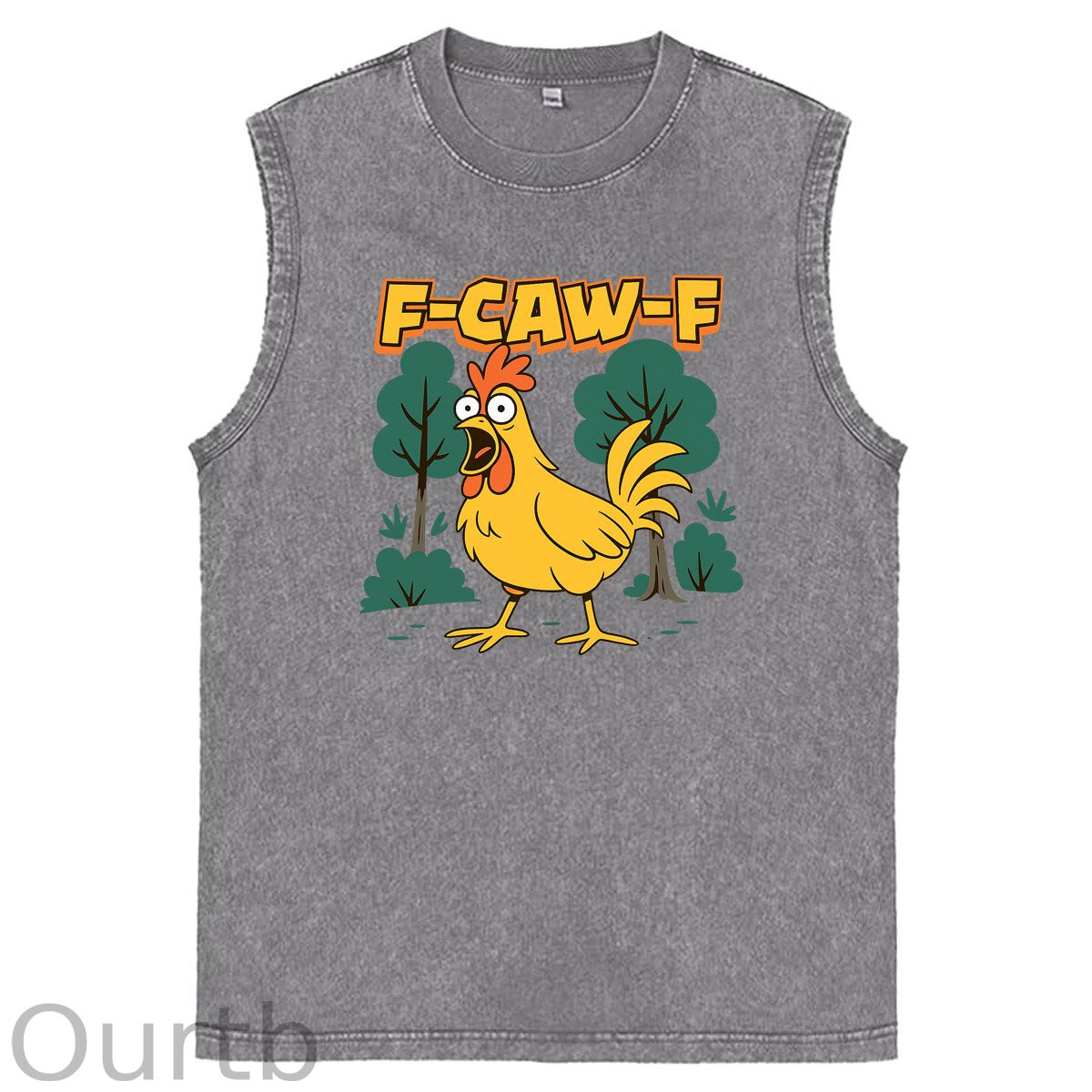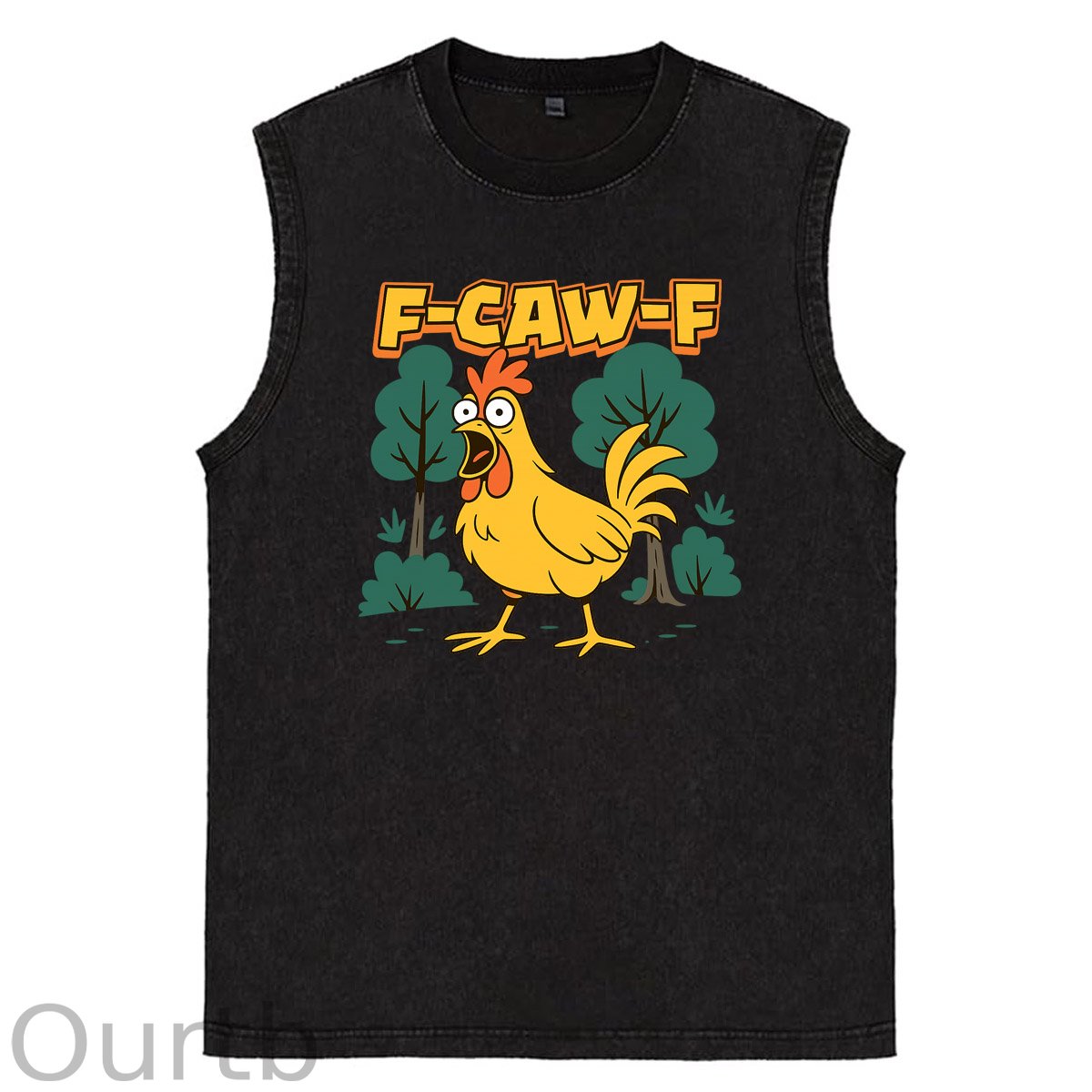 F-Caw-F Crazy Chicken Pattern Sleeveless Cotton Washed Printed Loose Vest