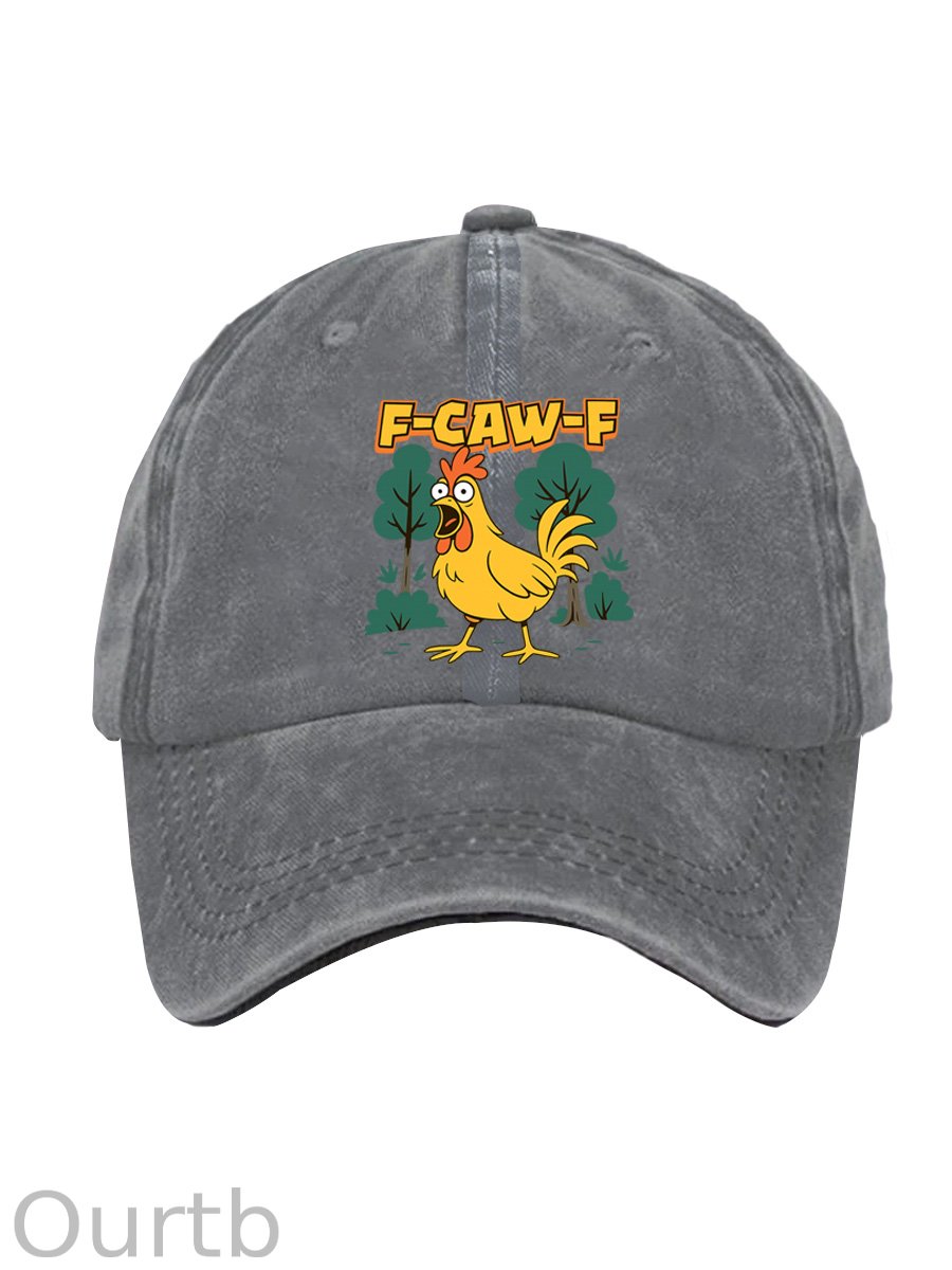 F-Caw-F Crazy Shocked Chicken Pattern Washed And Distressed Hats