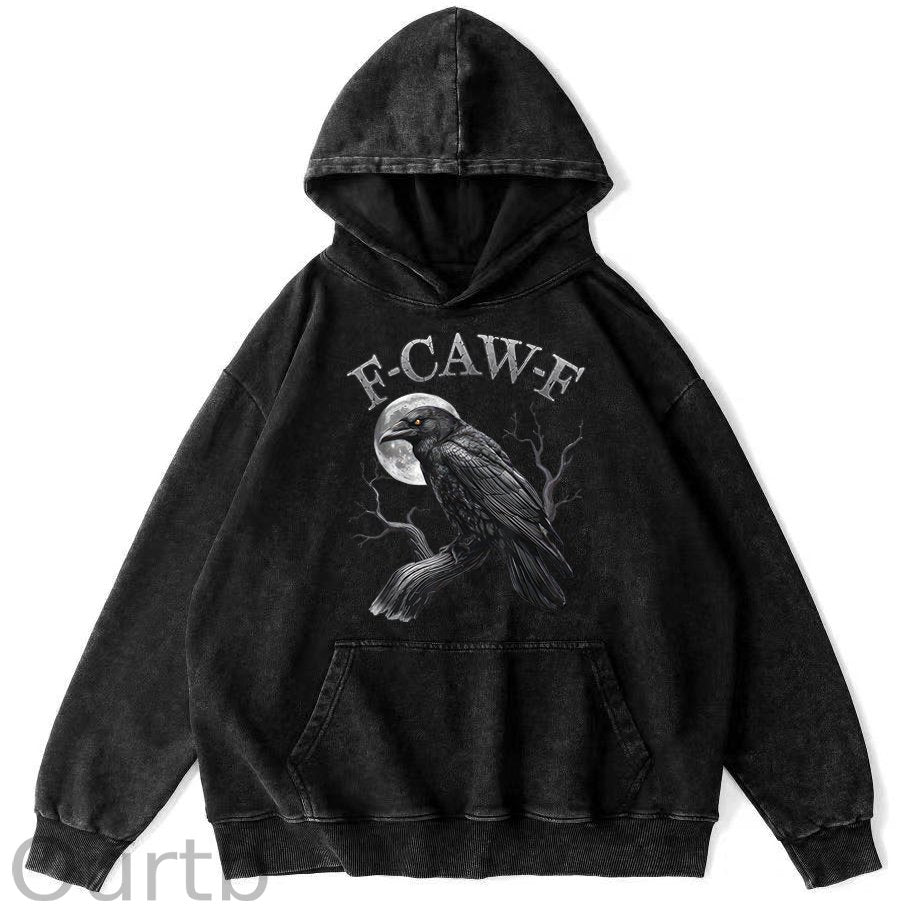 F-Caw-F Crow 100% 300g Cotton Washed Hooded Sweatshirt