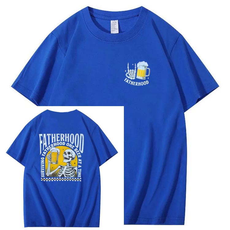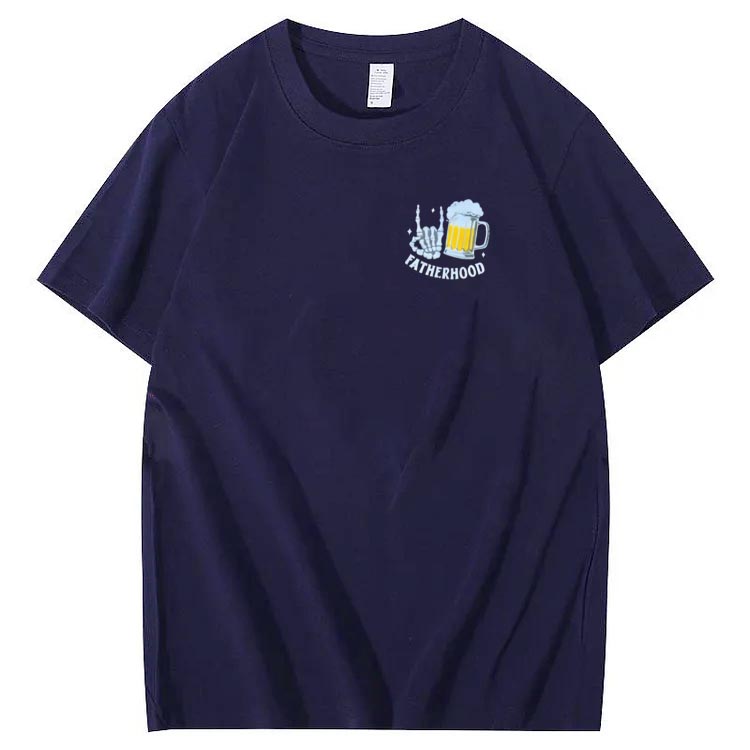 Fatherhood Skull And Beer Pattern Print Cotton T-Shirt