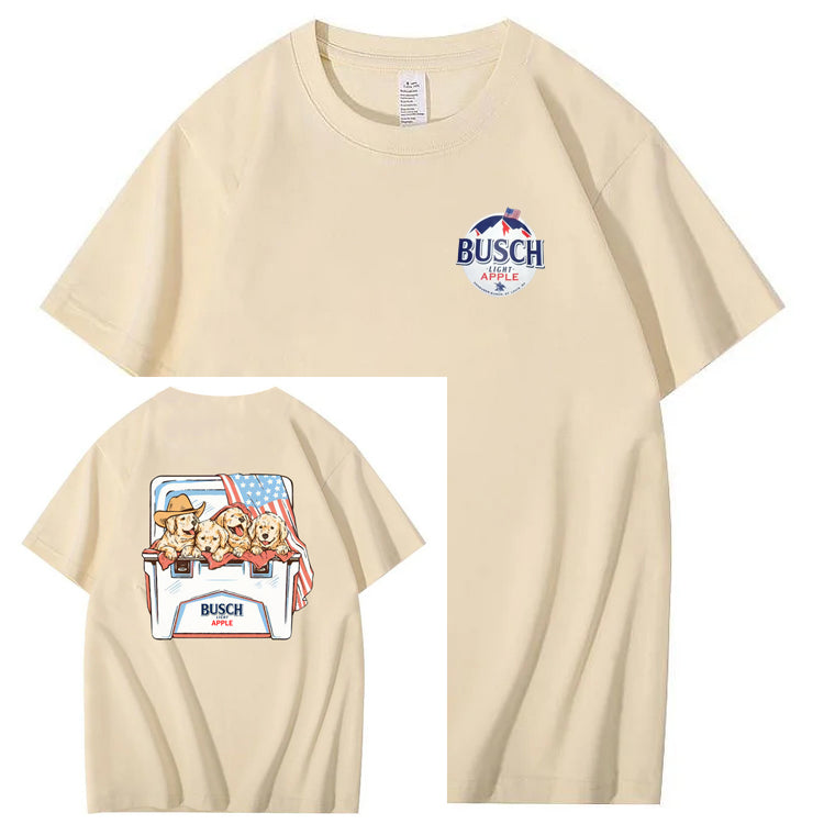 Happy Dogs And American Flag Pattern Print T-Shirt