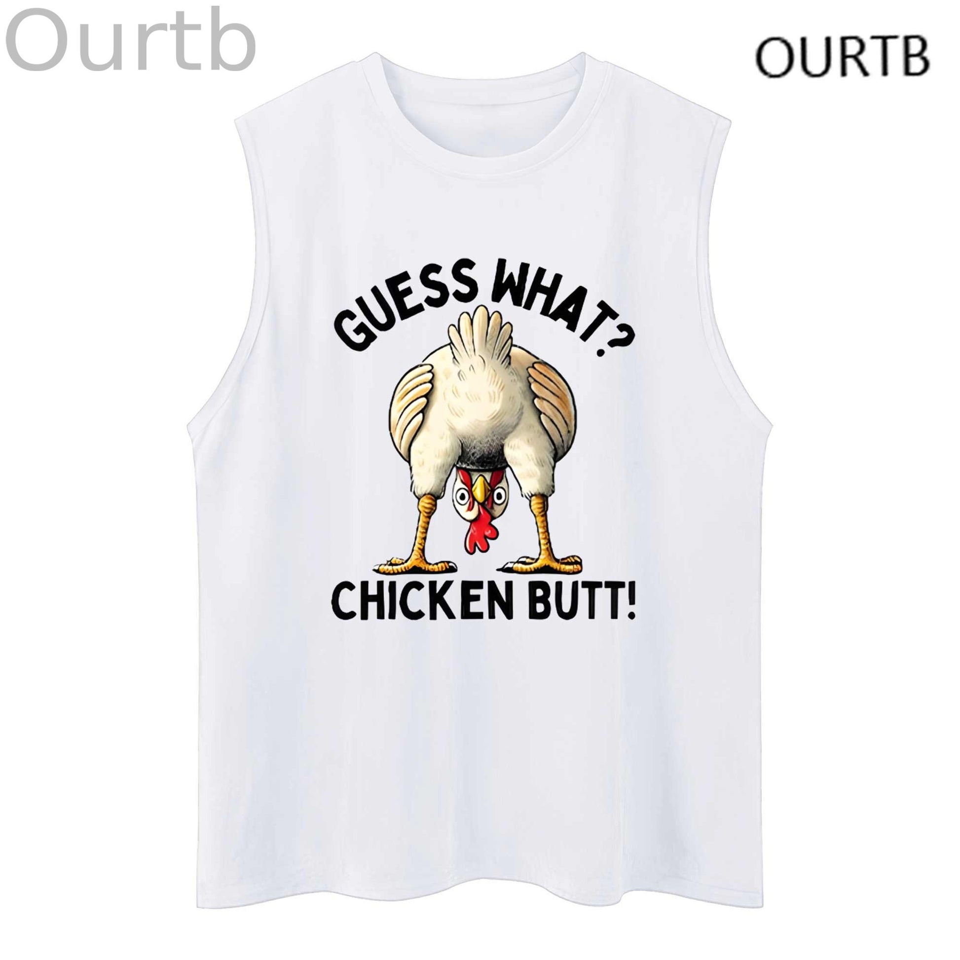 Guess What Chicken Butt Funny Adult Discomfort Art Print Cotton Sleeveless Tank Tops