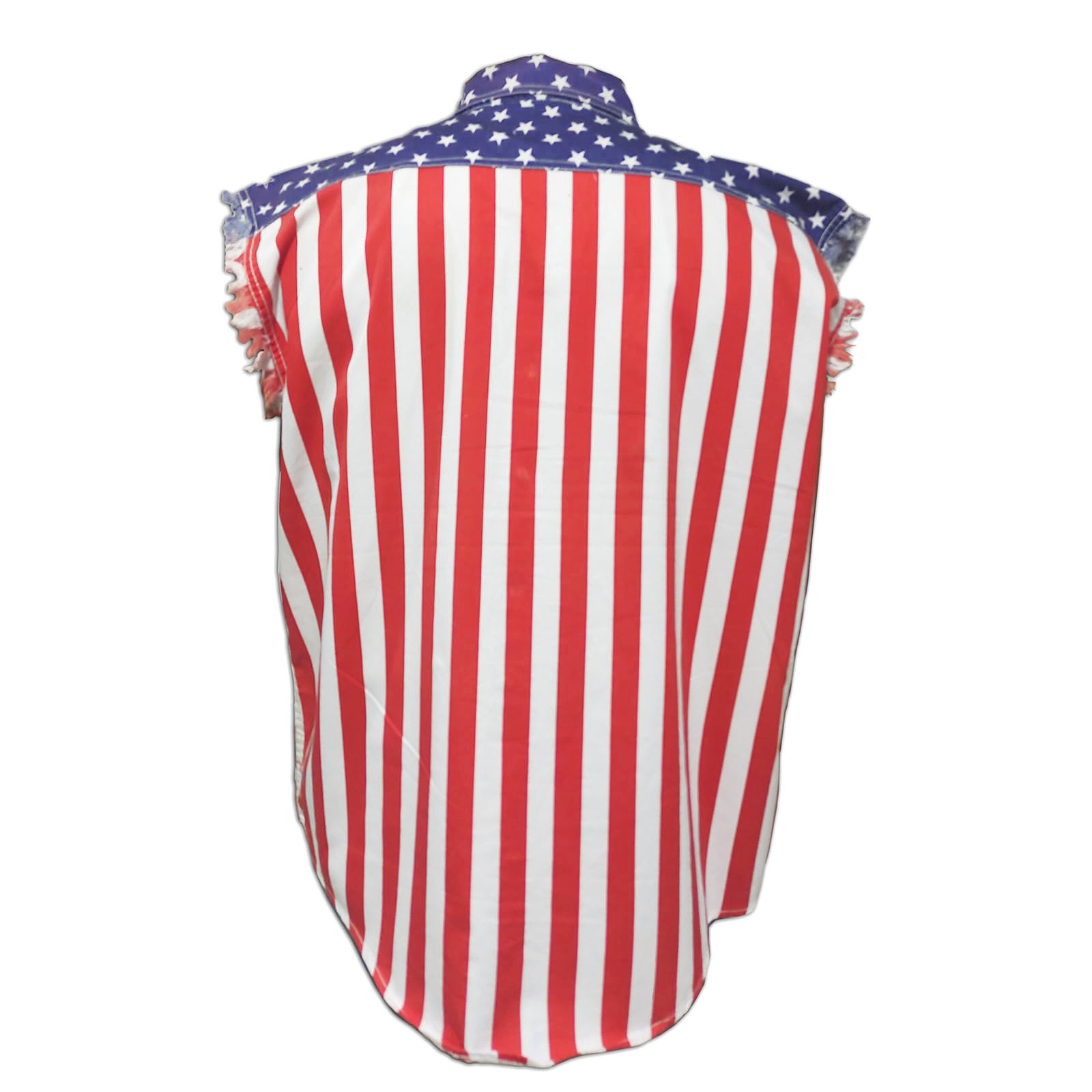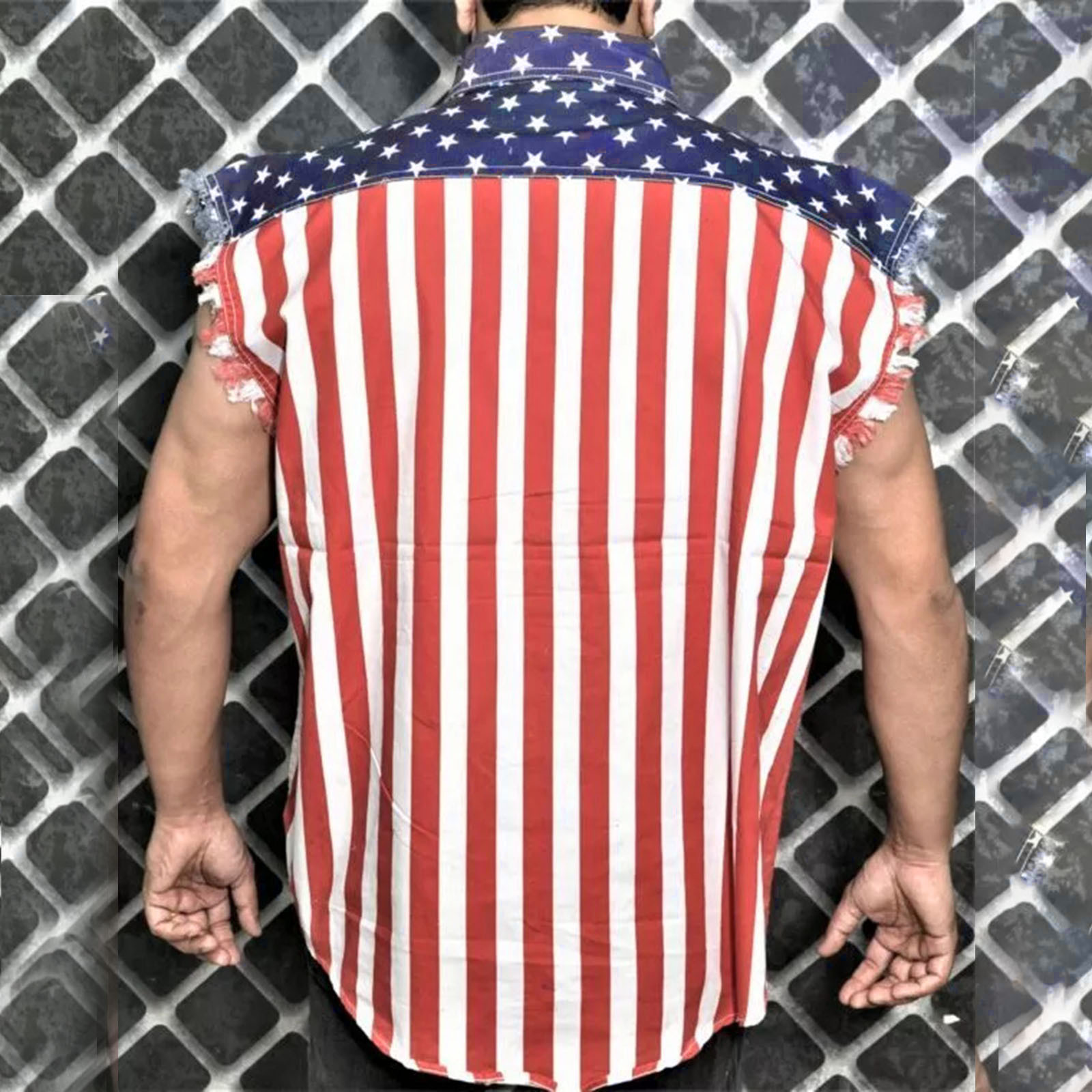 Men'S Independence Day Denim Tank Top Button Down Work Jacket