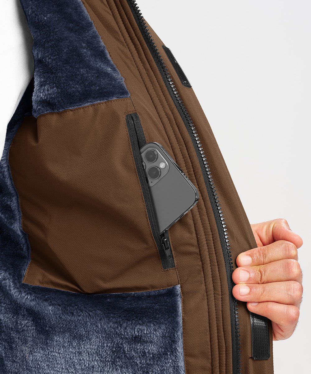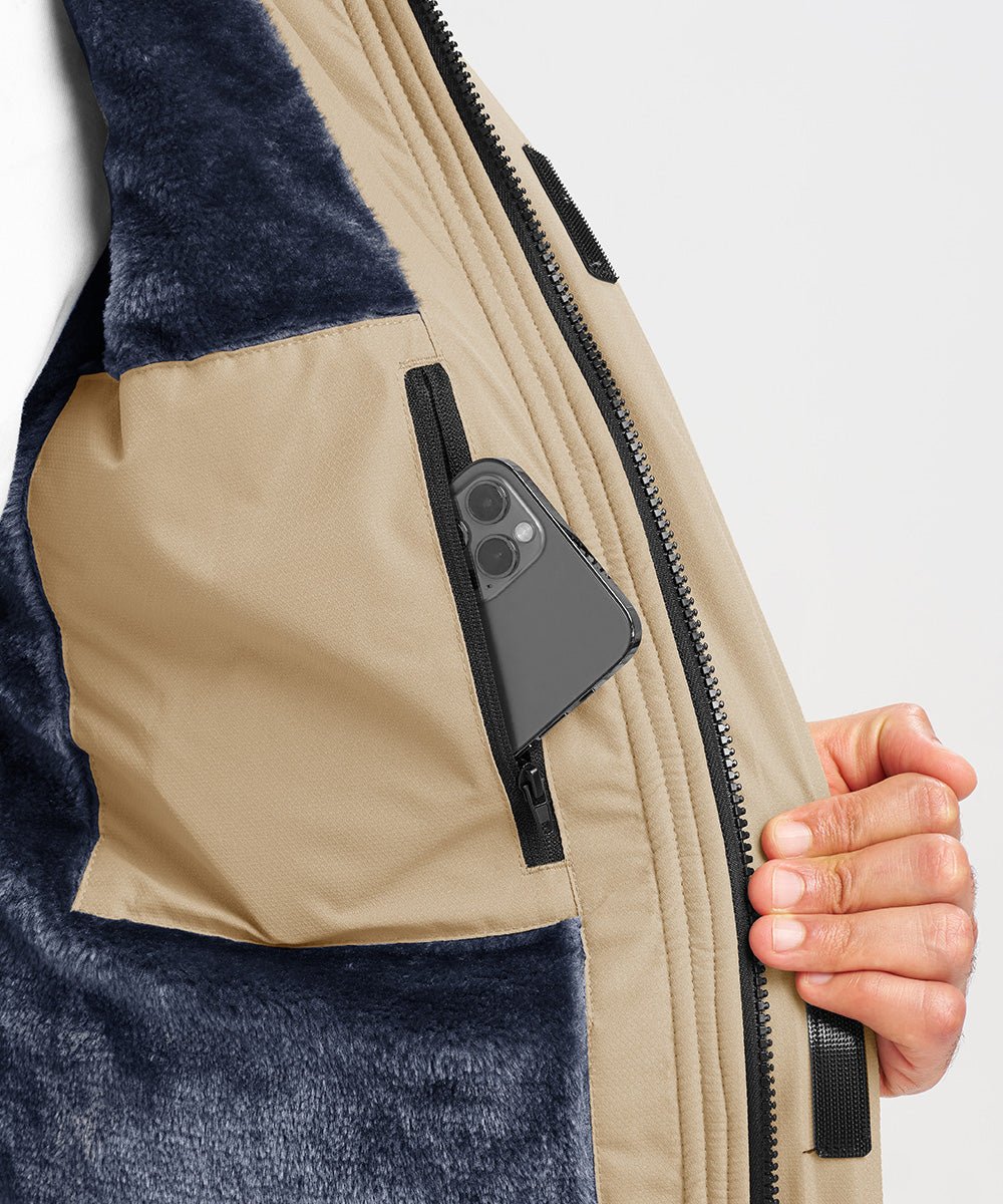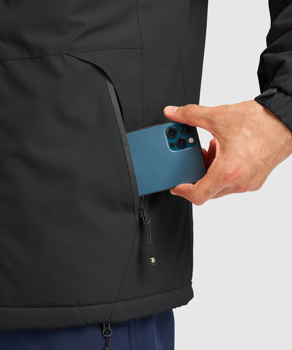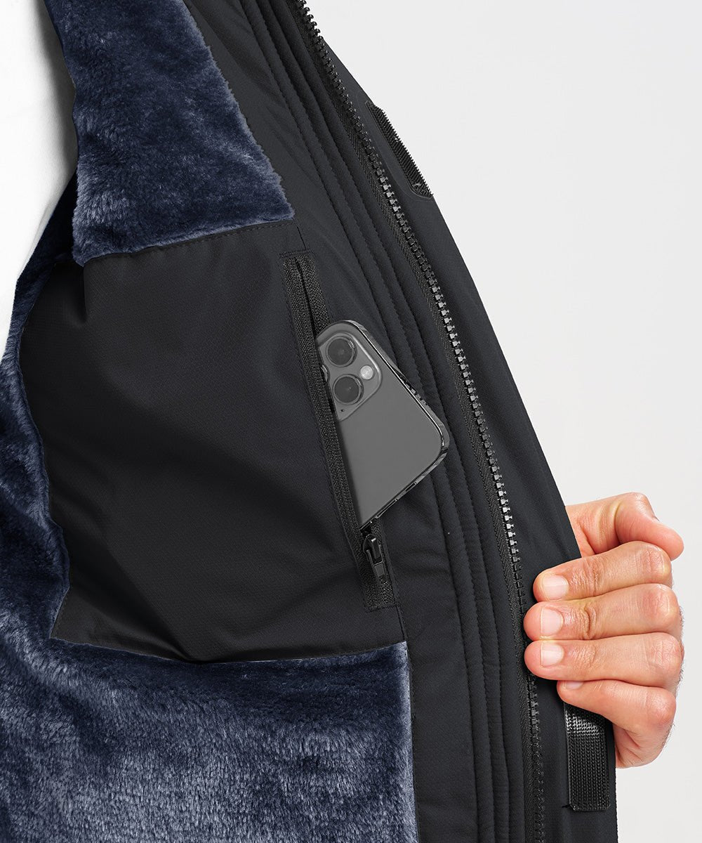 Jacket uses a special coating with good waterproof and Water Resistant function, all exterior pockets are designed with waterproof structure. Suitable for winter snowy weather.