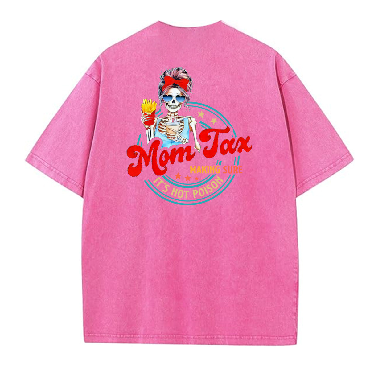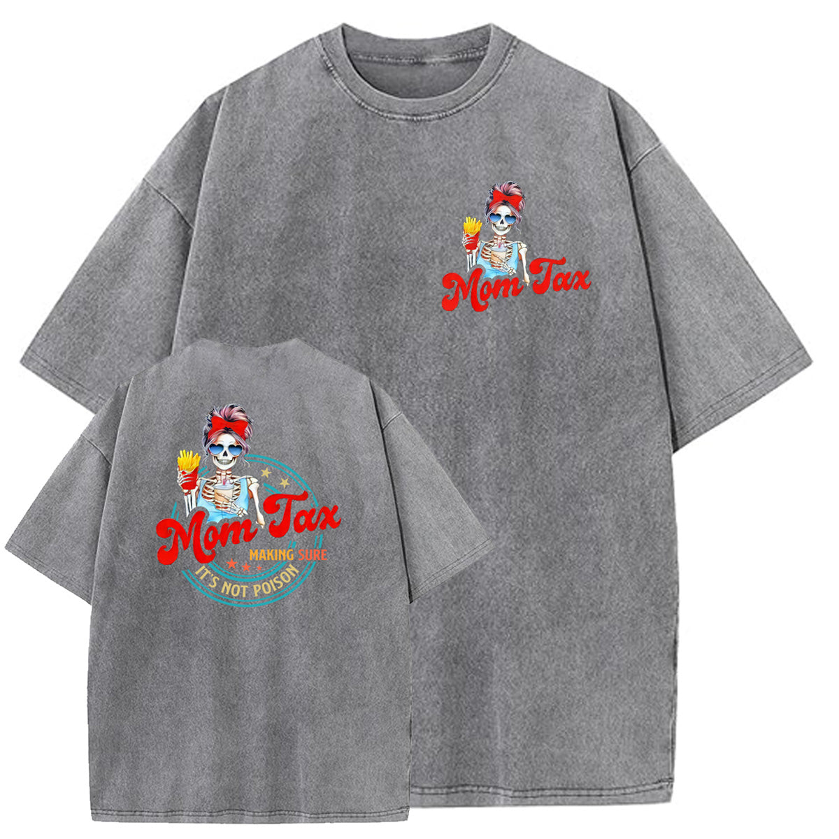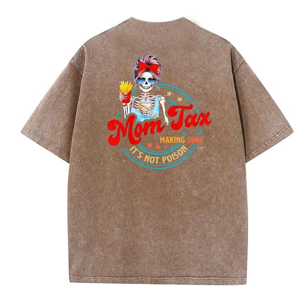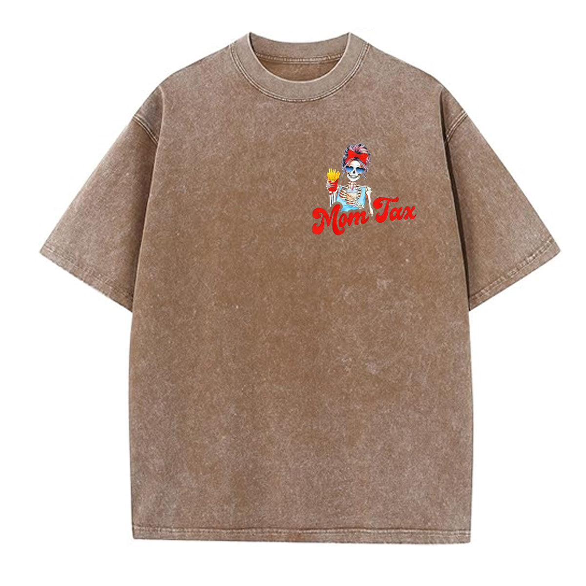 Mom Tax Washed And Distressed Pattern Crew Neck T-Shirt