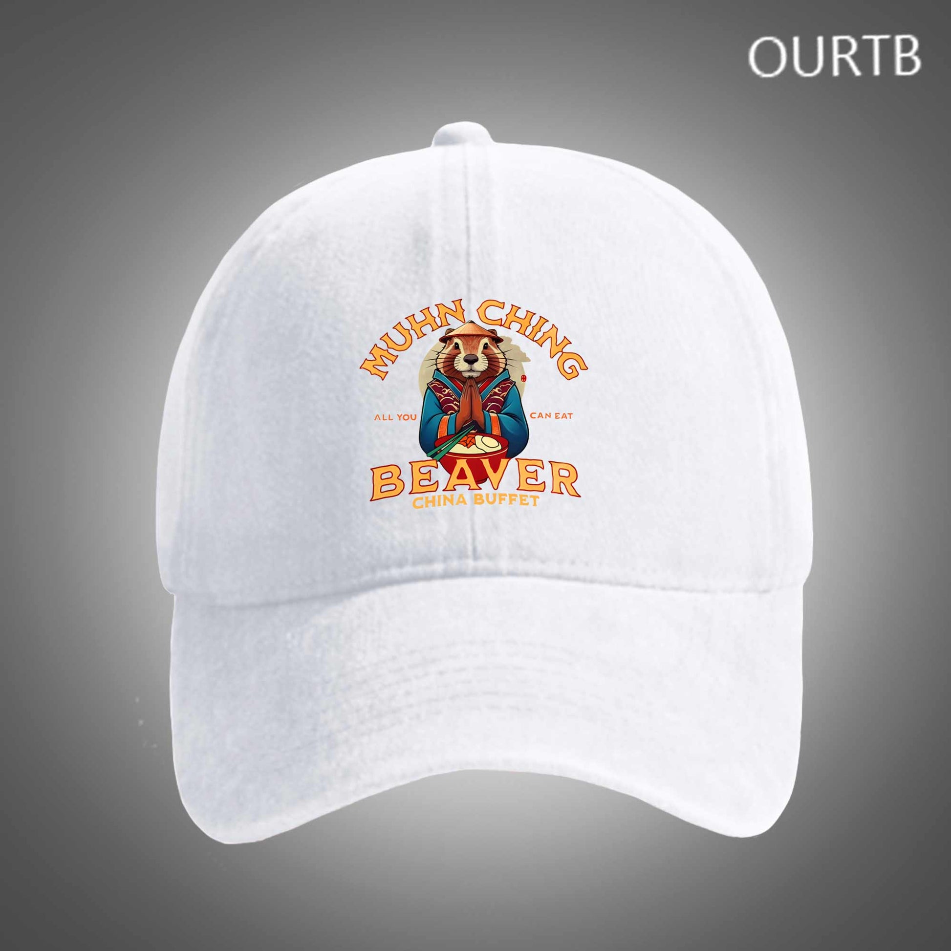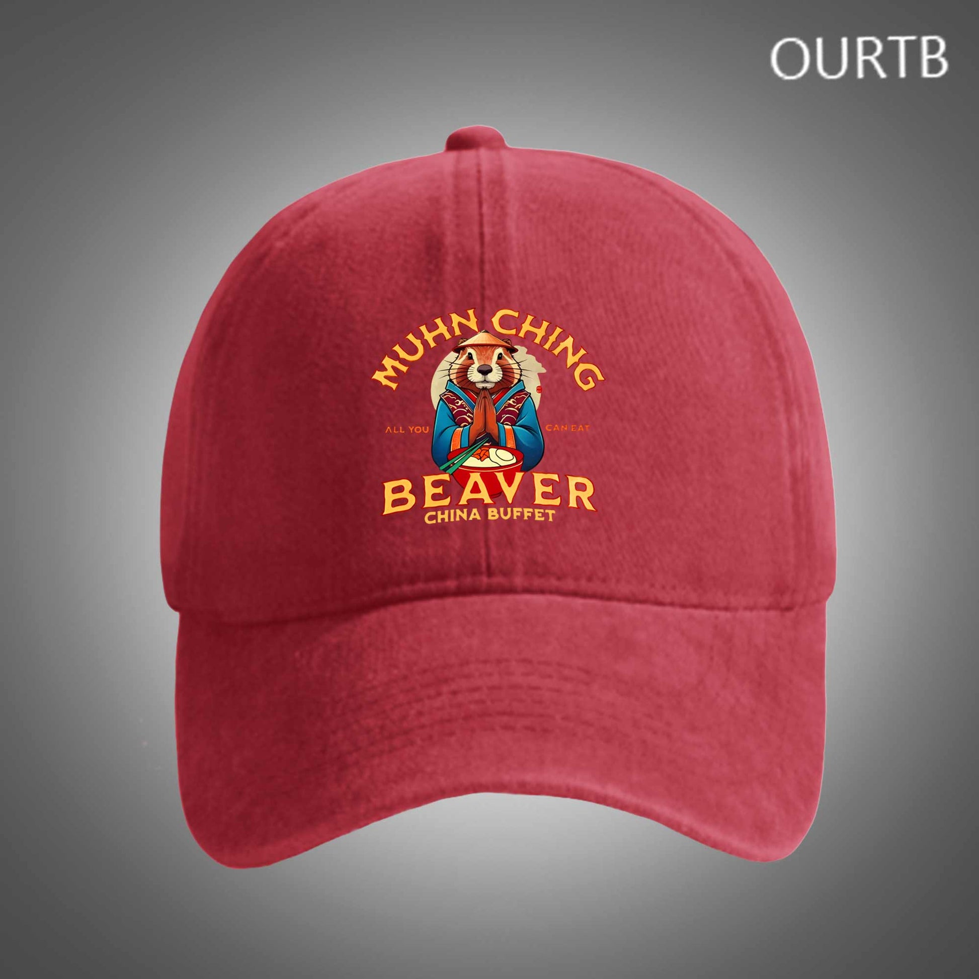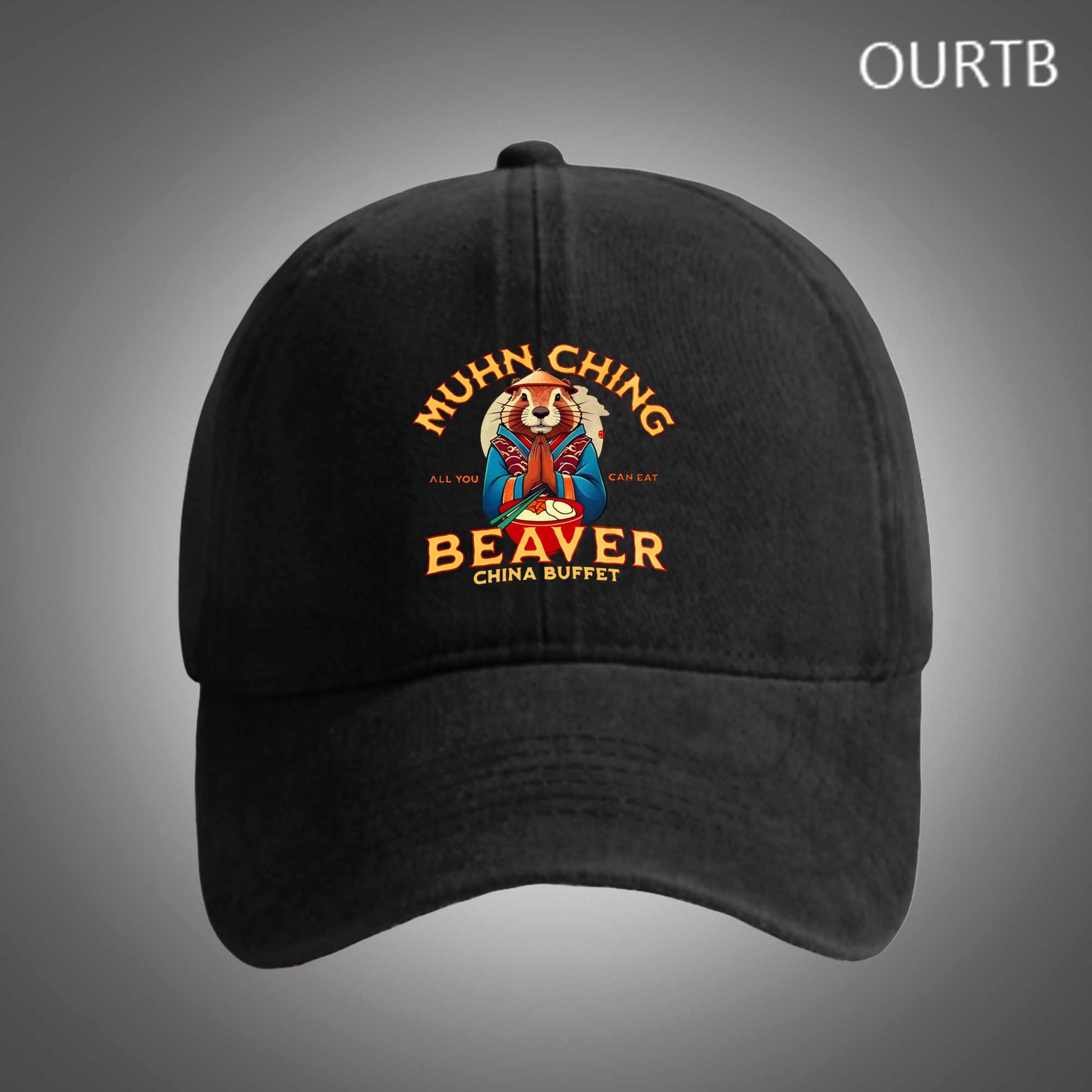 Muhn China All You Can Eat Beaver China Buffet Funny Art Print Unisex Distressed Cotton Washed Art Print Hat