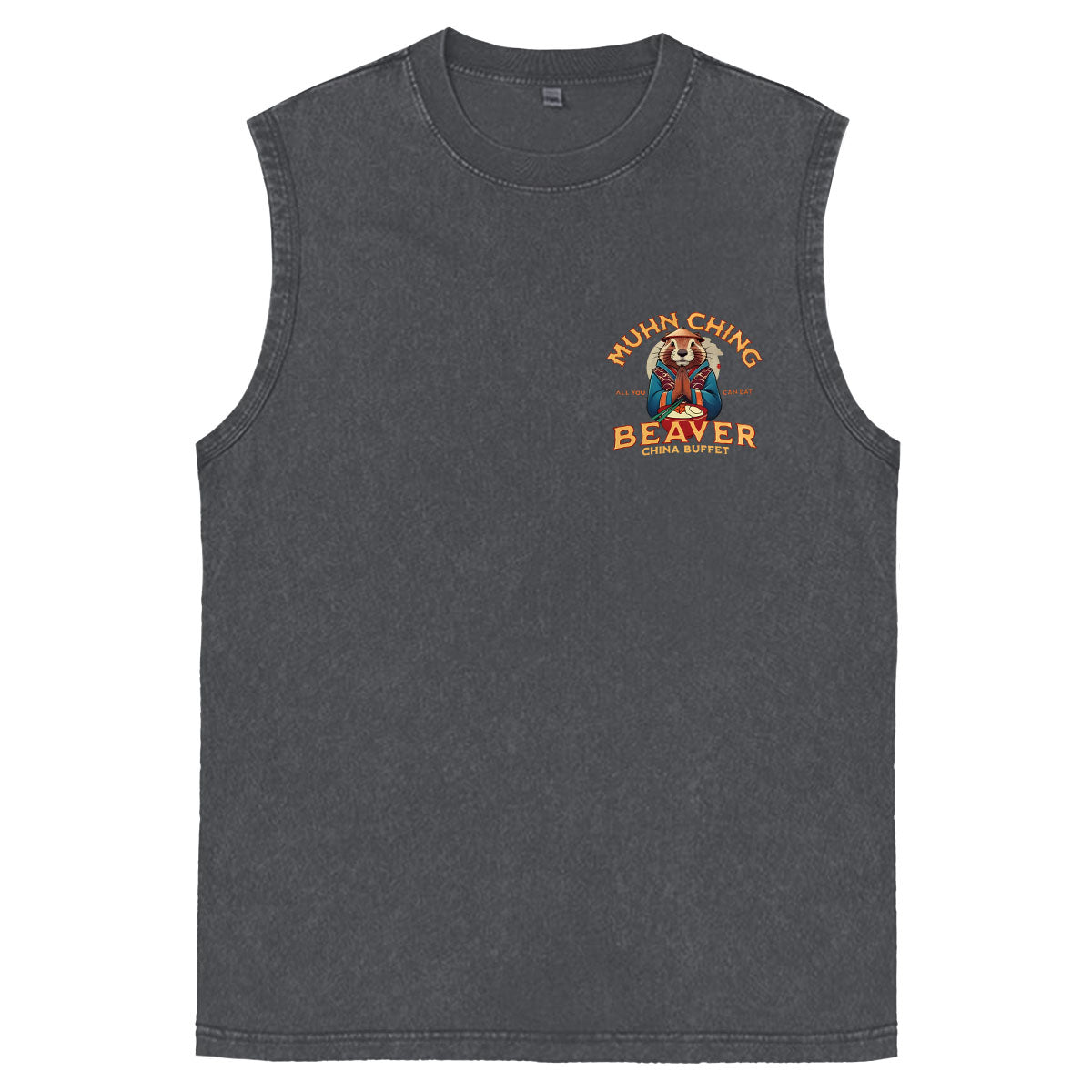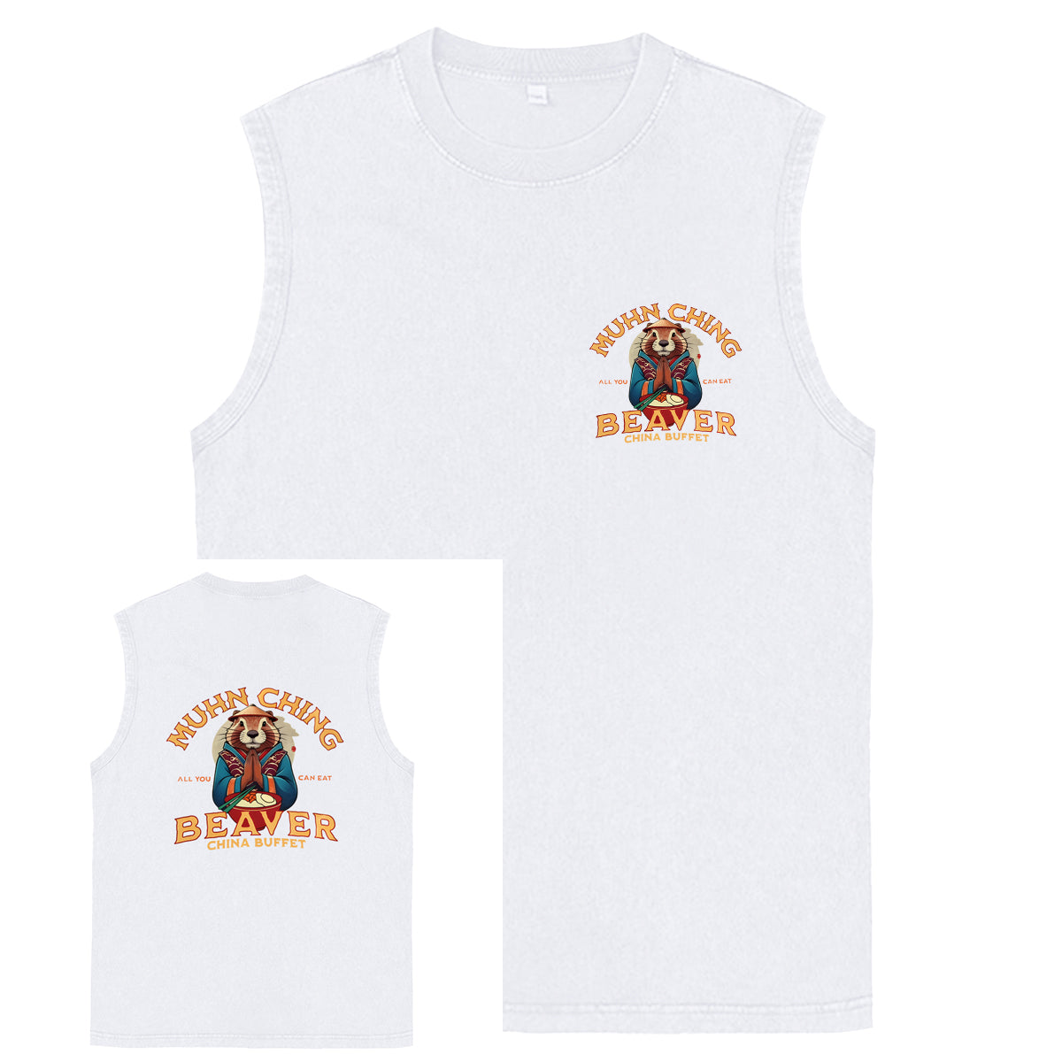 Muhn Ching All You Can Eat Beaver China Buffet Art Print Cotton Sleeveless Tank Tops