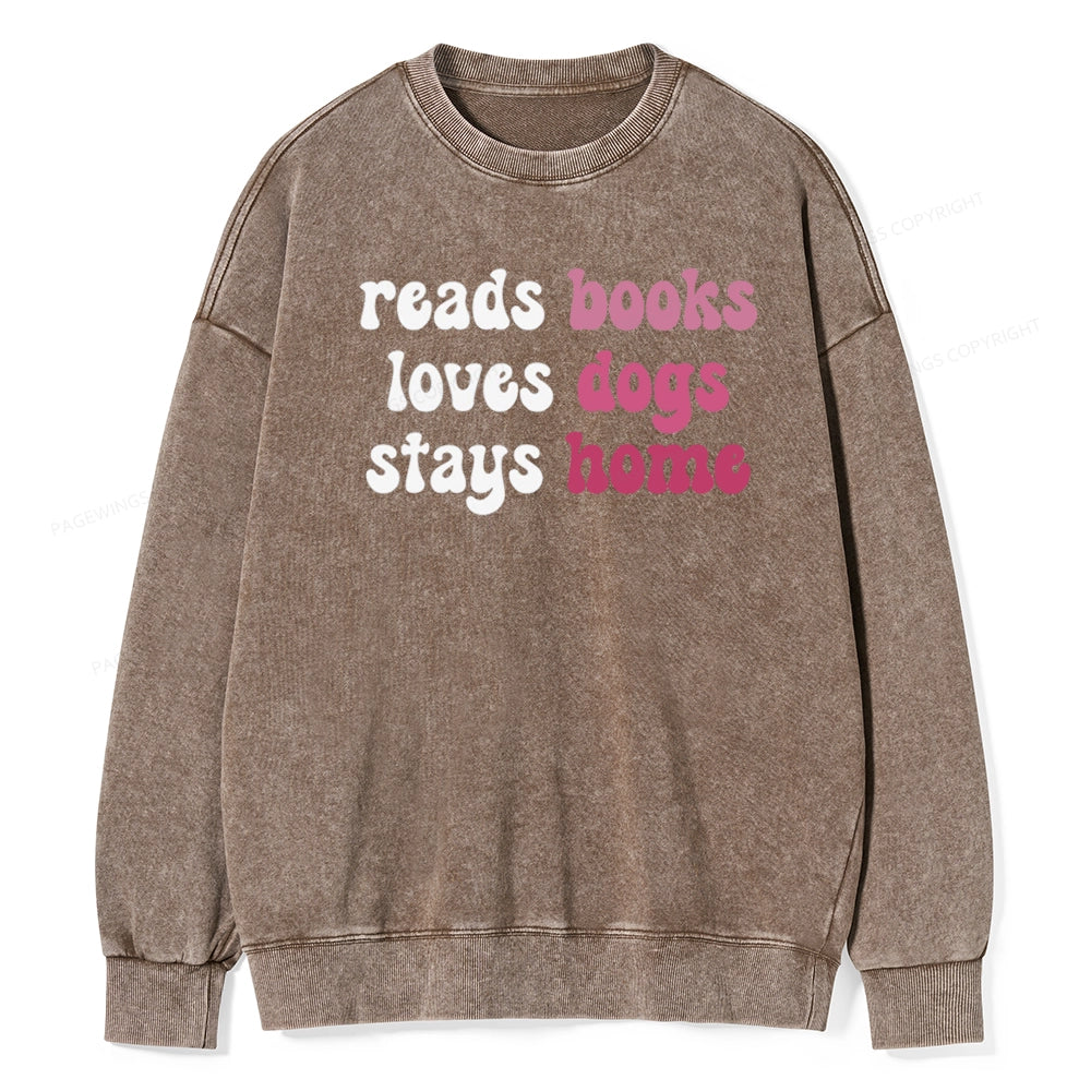 Pagewing Read Books & Love Dogs & Stay Home Unisex Washed Sweatshirt