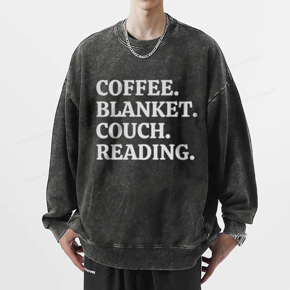 Coffee Blanket Couch Reading Unisex Washed Sweatshirt