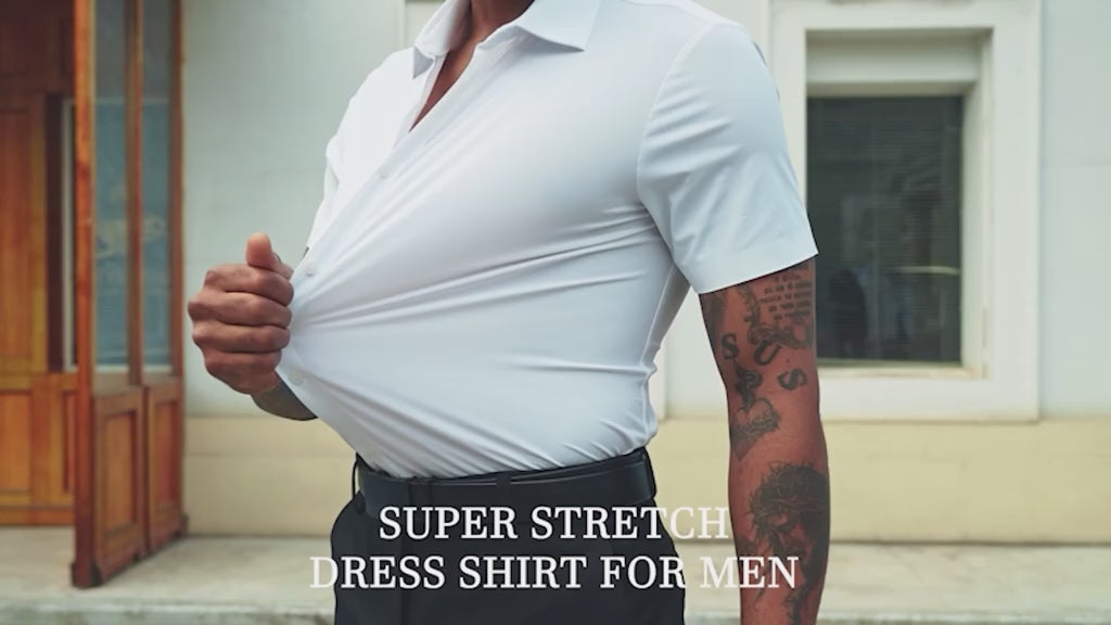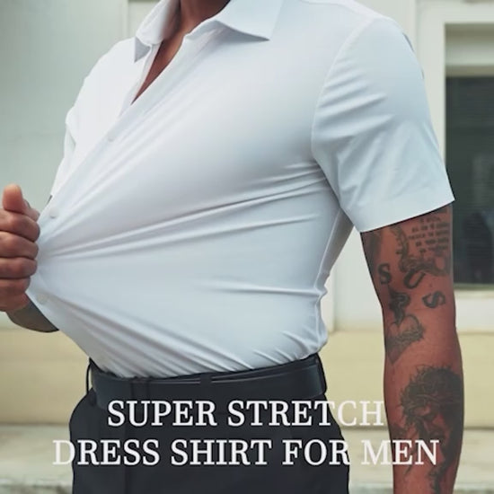 Stretch Dress Shirts for Men Short Sleeve Slim Fit Casual Button Down Shirts Muscle Fit Men's Dress Shirts
