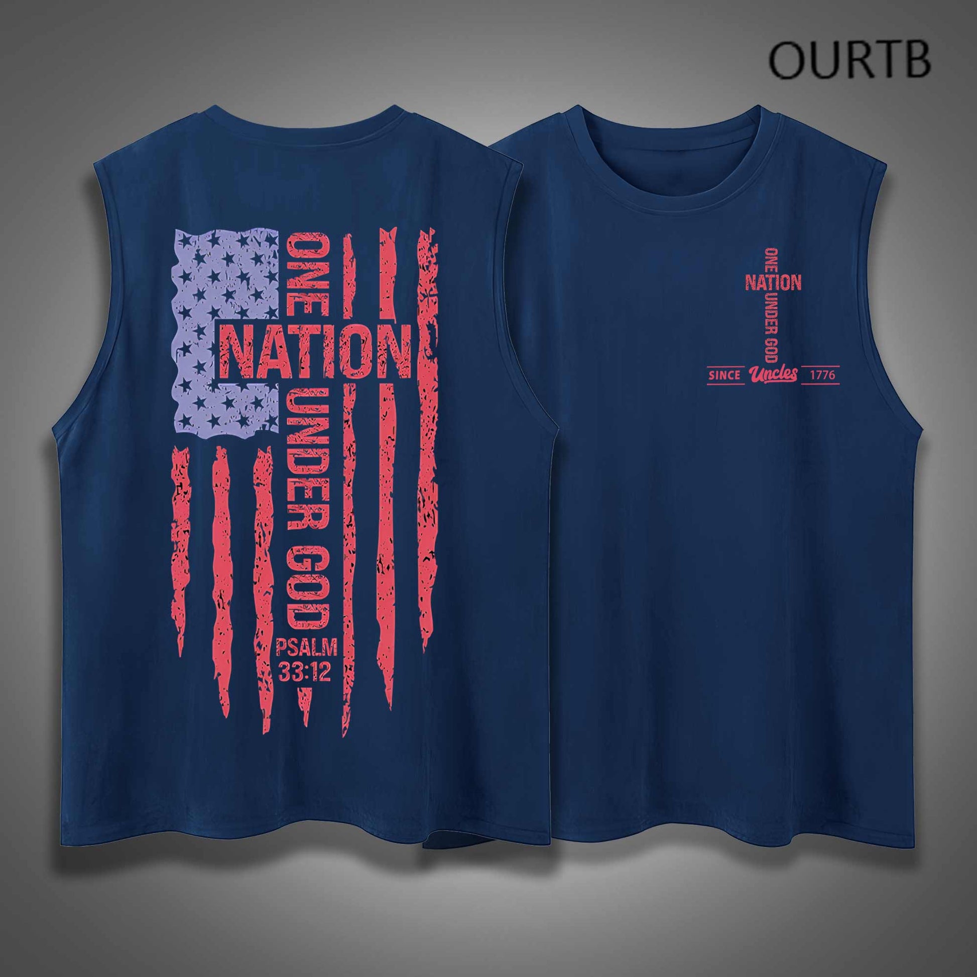 Uncle Since 1776 One Nation Under God USA Independence Day Funny Adult Discomfort Art Print Cotton Sleeveless Tank Tops