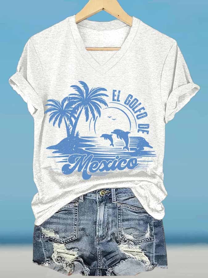 Women's Gulf Of Mexico Printed V Neck T-Shirt