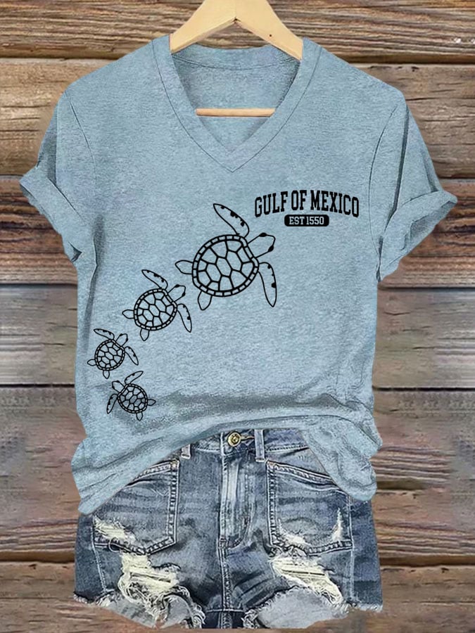 Women's Gulf Of Mexico Printed V Neck T-Shirt