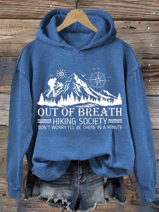 Women's Out Of Breath Hiking Society Don't Worry I'll Be There Soon Printed Hooded Long Sleeve Sweatshirt