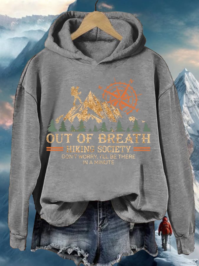 Women's Out Of Breath Hiking Society Don't Worry I'll Be There Soon Printed Hooded Long Sleeve Sweatshirt